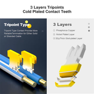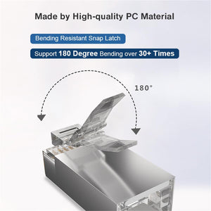 - 이러한 Cat6 RJ45 플러그는 더 나은 데이터 전송을 달성하고 최대 1000Mbps 속도를 지원합니다. Cat6 Cat 5e 스트랜드 케이블이나 솔리드 케이블과도 이전 버전과 호환됩니다.