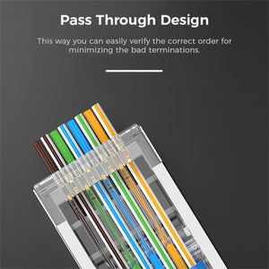 - 패스스루 기능을 사용하면 플러그를 압착하기 전에 전선이 올바른 순서인지 확인할 수 있도록 전선이 플러그를 완전히 통과할 수 있습니다.