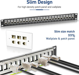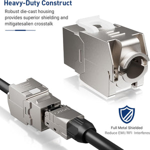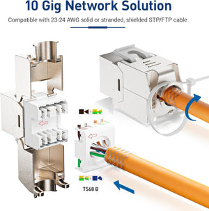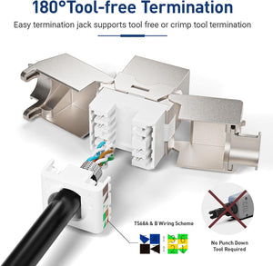 12개 RJ45 Cat7 Cat6A 차폐 키스톤 잭, Cat 7 10Gbps 간편 도구 없이 사용 가능한 모듈러 잭, PoE, 23~24 AWG 단선 또는 연선 S/FTP 이더넷 케이블용