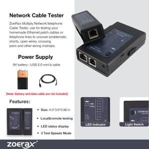 【다기능 케이블 테스터】모든 데이터 전송 설치 작업에 필요한 LAN/이더넷 케이블의 연결을 쉽게 테스트합니다(9V 배터리 및 USB 케이블은 포함되어 있지 않습니다).