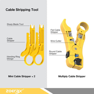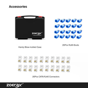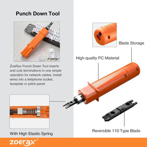 ZOERAX 전문 네트워크 도구 키트, 8 in 1 RJ45 크림프 도구 키트 - 패스스루 크림퍼, RJ45 테스터, 110/88 펀치 다운 도구, 스트리퍼, 커터, Cat6 패스스루 커넥터 및 부츠