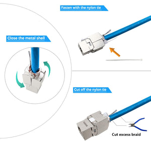 12 Pcs Cat6a Cat7 Keystone Jack Cat7 RJ45 STP Tool-Less Type Zinc Alloy Module Jacks Adapter Coupler for 22 to 26 AWG Solid or Stranded S/FTP Ethernet Cable
