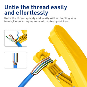 Strips cable shells, straightens wires, locks structure, untangles cross cables, and cuts cables efficiently.