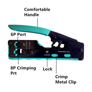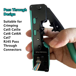 【Cat7/Cat6/Cat6A/Cat5e/Cat5 Pass Through RJ45 Ethernet Crimper Design】 Professional RJ45 Pass Through Ethernet Crimper With Pass Through Design Can Crimp RJ45 Cat7 Cat6A Cat6 Cat5e Cat5 Shielded and unshielded Pass Through Connectors; It can crimp 23 to 26 AWG round network cable. It is also compatible with rj12 connectors. More easy to operate; Reduces working time.