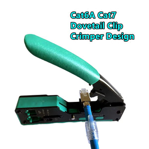 【Cat6A/Cat7 Dovetail Clip Crimper Design】 Great for Crimping Cat6A/Cat7 Shielded or unshielded Standard Connectors or pass through connectors with Dovetail clamping, More Easier: When we crimping cat6A/cat7 shielded standard connectors or pass through connectors, we can use professional dovetail clamping port to better fix the connectors, so that the network cable is not easy to fall off.