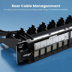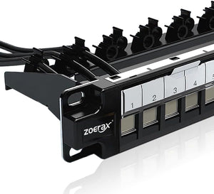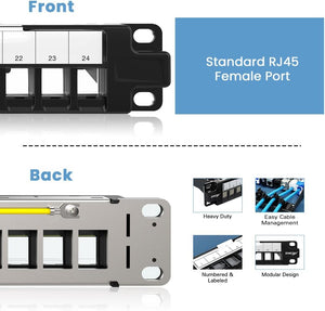 24-портовая пустая патч-панель Keystone 1U, прочная 19-дюймовая экранированная патч-панель RJ45 для монтажа в стойку или на стену с защитной шторкой и задней панелью управления кабелями