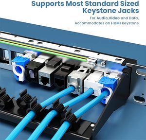 - Универсальная установка: легко монтируется в 19-дюймовую стойку высотой 1U или на стену. Поддерживает различные разъёмы Keystone, включая HDMI, RJ45, USB и другие, обеспечивая гибкие и настраиваемые сетевые конфигурации как для жилых, так и для коммерческих помещений.