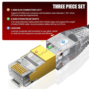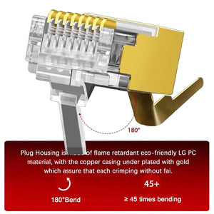 - 【Наслаждайтесь высокоскоростным подключением】Этот разъем RJ45 cat7 также поддерживает более высокие скорости передачи данных до 10 Gigabit Ethernet.