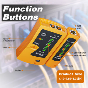 - 【Тестер кабеля RJ45】: Тестер кабеля ZoeRax RJ45 имеет встроенный высокопроизводительный чип, который обеспечивает более быстрые результаты тестирования при осмотре проводов и тестировании сетевых кабелей Ethernet LAN RJ11 и RJ45, таких как RJ45 Cat5 Cat5E Cat6.