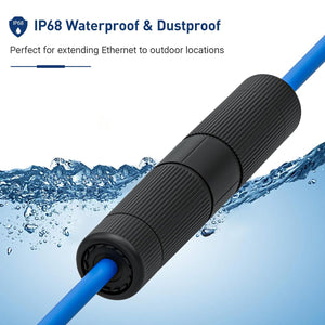 - Водонепроницаемость и пыленепроницаемость: этот соединитель предназначен для надевания на любой стандартный кабель Ethernet и обеспечивает водонепроницаемое и пыленепроницаемое соединение двух кабелей.