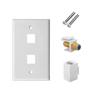Содержимое упаковки: 1 настенная пластина для портов: настенная пластина + коаксиальный разъем Keystone + 2 винта (не входит в комплект поставки низковольтный монтажный кронштейн).