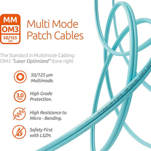 Волоконно-оптический патч-корд OM3 LOMMF подключается к трансиверам 10GBase-SR, 10GBase-LRM, SFP+ и QSFP+ для сетей 10 Гбит/с.